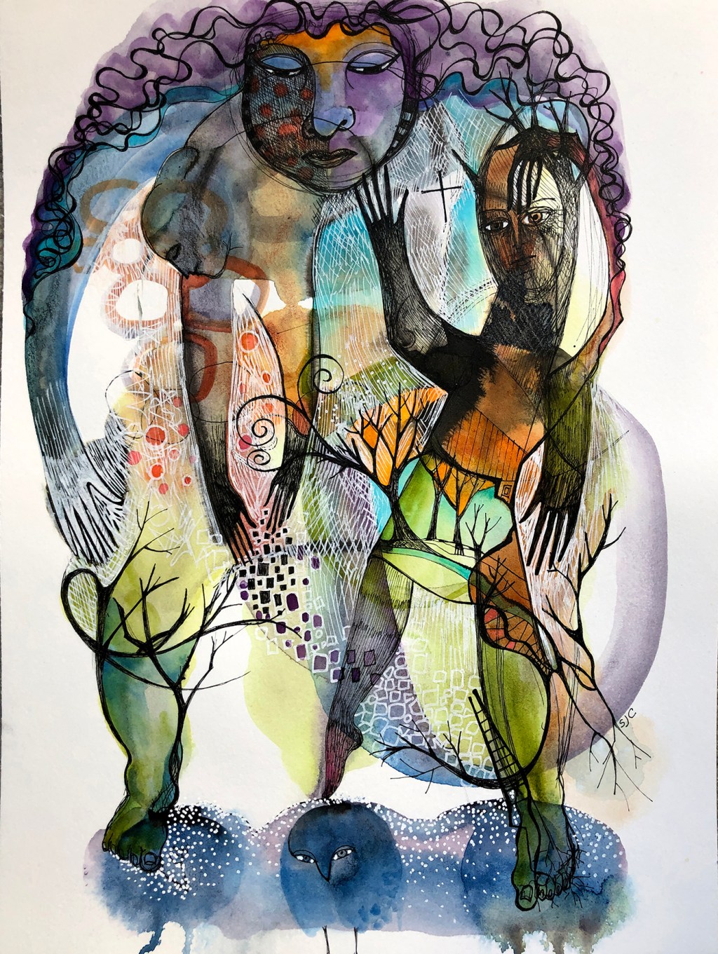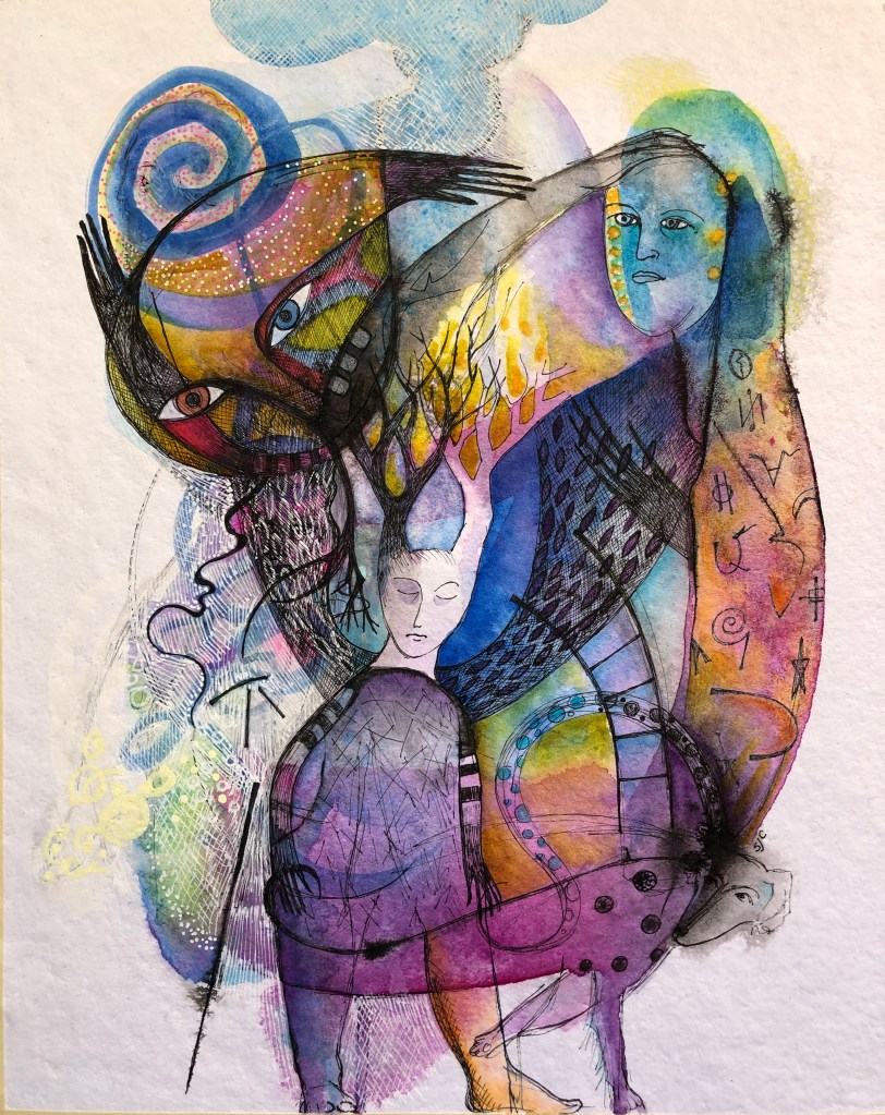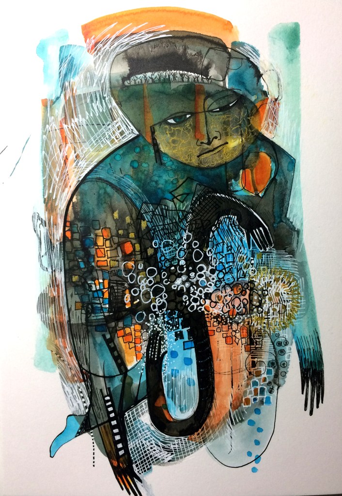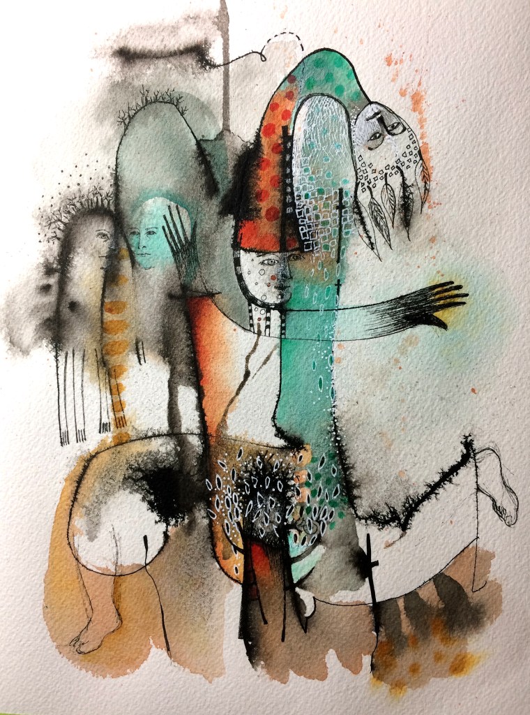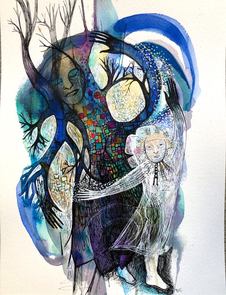 ‘Fishing for Memory’, watercolor, ink, acrylic on paper, 12 x 9 inches, $300 plus shipping
