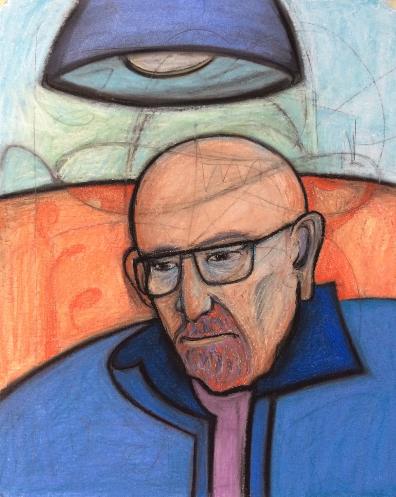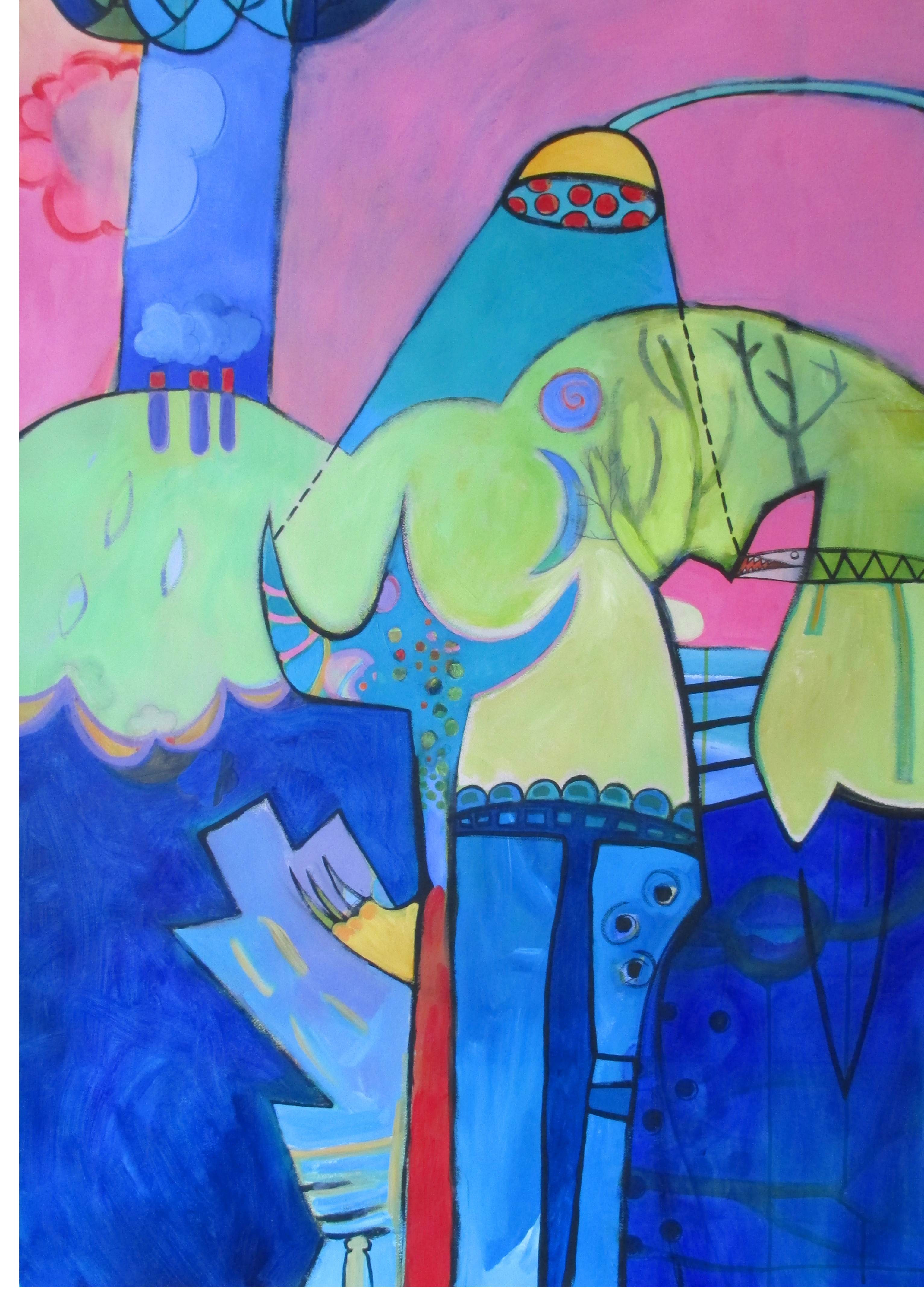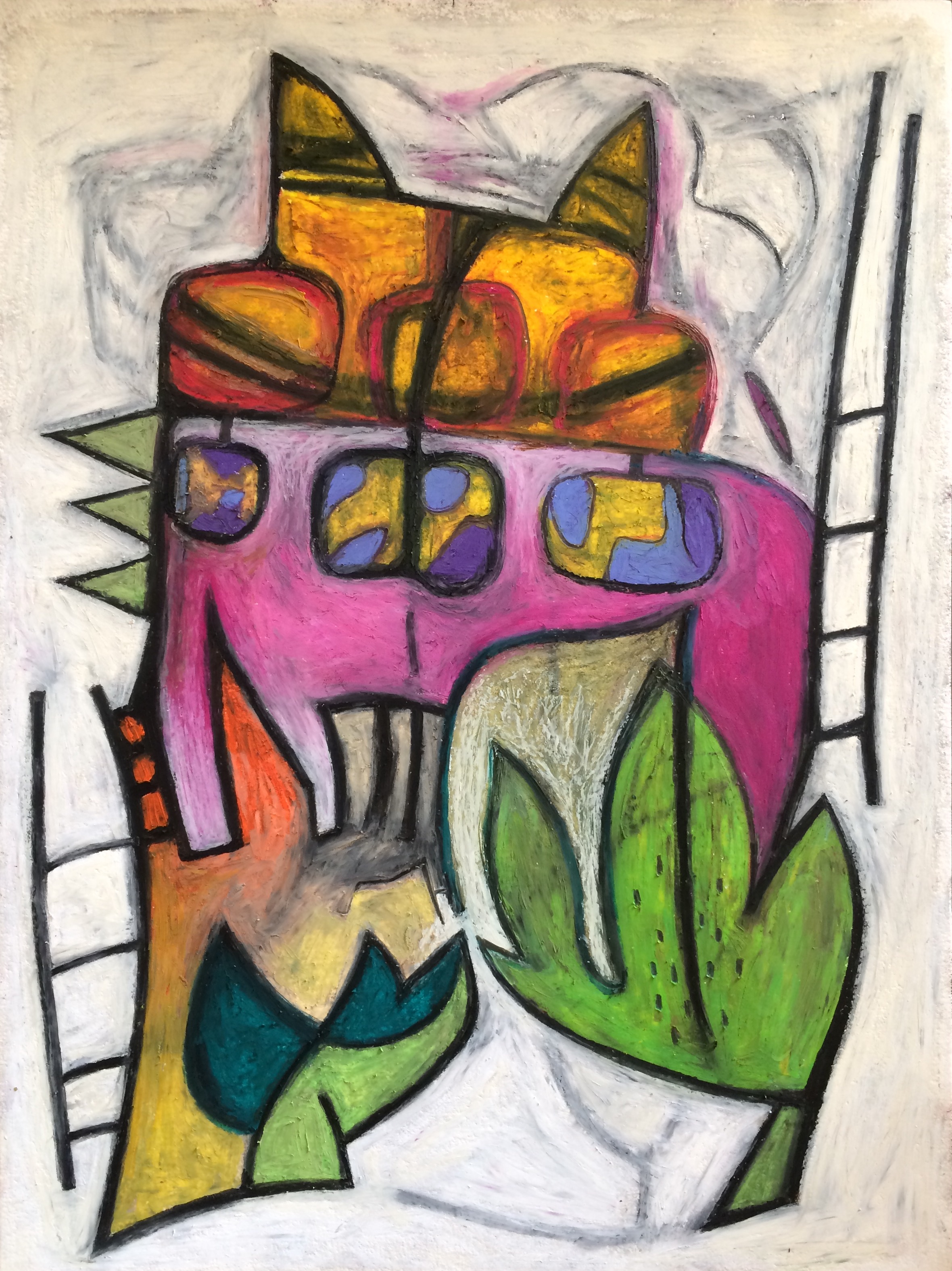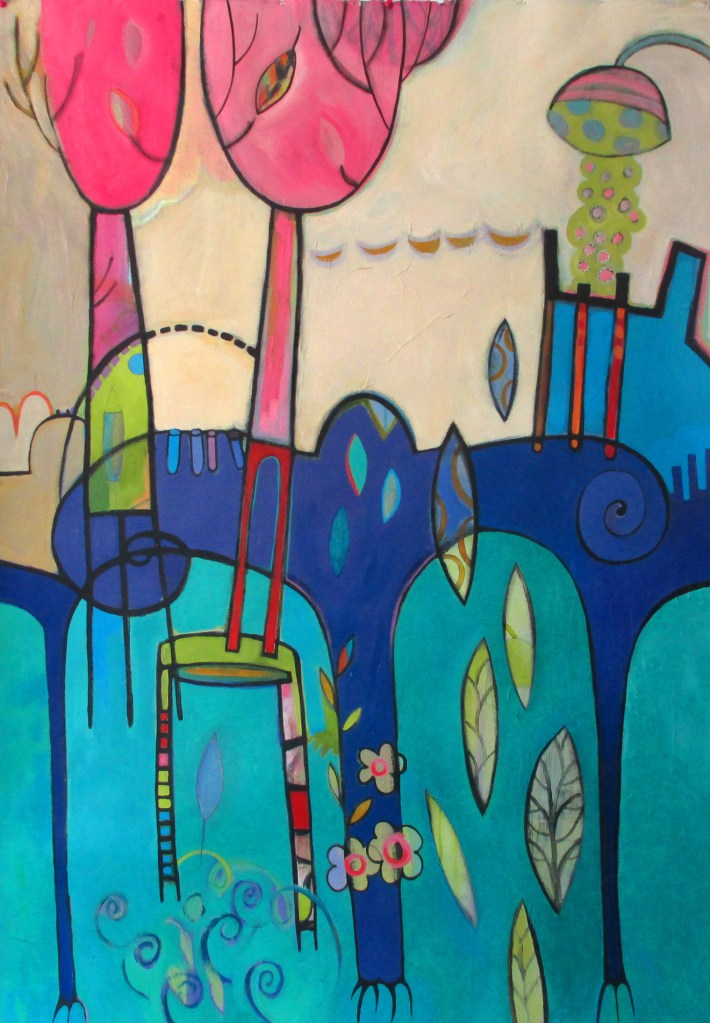 ‘Pink Trees’, 50 x 36 inches, acrylic on paper, 2015‘Life Under Water’, 50 x 36 inches, acrylic on paper, 2015‘Bija’, 48 x 36 inches, acrylic on paper, 2015‘Deep, Blue, Separate’, oil on paper, 22 x 30; 2016‘Candy Cigarette’, 22 x 30 inches; oil on paper; 2016‘Pusheen’, 30 x 22 inches, oilpaint on paper, 2016‘Catty’, oil pastel, 12 x 9 inches, 2017‘Electrical Storm’, 27 x 21 inches, pastel on paper, 2017‘Dad – 01’, 17 x 14 inches, pastel on paper mounted on birch panel, 2017 (part of a series of portraits I created for my 2017 show at Gallery 110, Seattle WA)